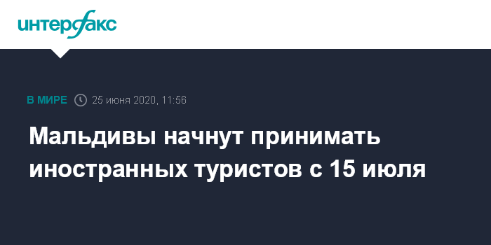 Москва. 25 июня. INTERFAX.RU - Мальдивы начнут принимать иностранных туристов с 15 июля, справки об отсутствии у них корнавирусной инфекции не потребуется, решило правительство. Решение касается и граждан России.
