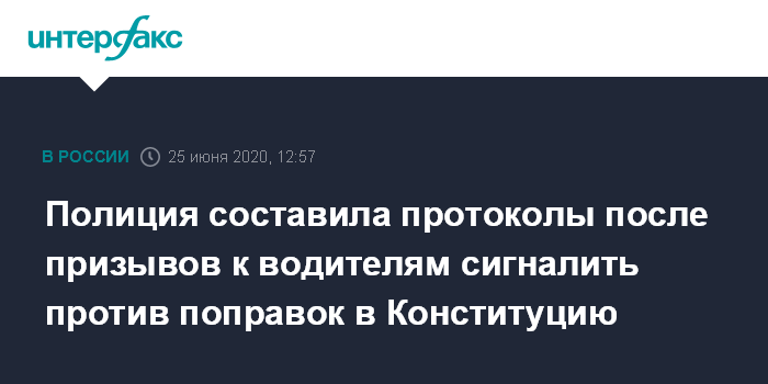 Полиция составила протоколы после призывов к водителям сигналить против поправок в Конституцию