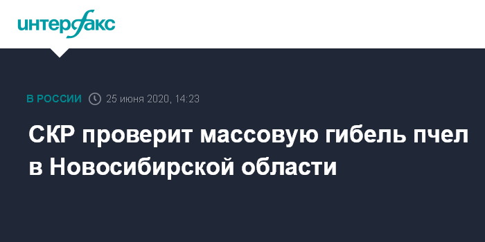 Москва. 25 июня. INTERFAX.RU - В Новосибирской области Коченевский отдел регионального управления СК проверяет сообщения СМИ о массовой гибели пчел в селе Новотырышкино Колыванского района.