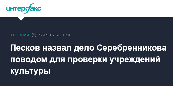 Москва. 26 июня. INTERFAX.RU - Пресс-секретарь президента Дмитрий Песков назвал дело "Седьмой студии" поводом для Министерства культуры проверить, как учреждения культуры расходуют бюджетные средства, и сократить коррупциогенность в этой сфере.