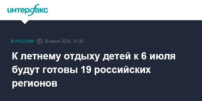 К летнему отдыху детей к 6 июля будут готовы 19 российских регионов