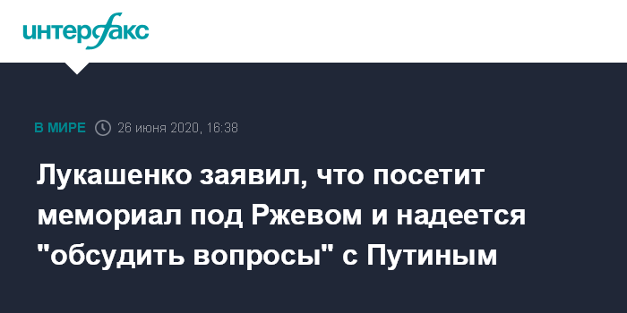 Ранее министр иностранных дел Белоруссии Владимир Макей заявил, что Лукашенко, скорее всего, примет приглашение главы российского государства встретиться на открытии мемориала под Ржевом 30 июня.