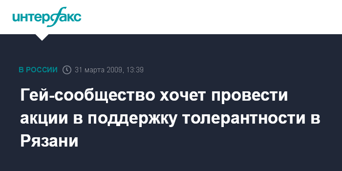 "Шествие в поддержку толерантного отношения и соблюдения прав и свобод лиц гомосексуальной ориентации в России с целью привлечения внимания общества и власти к проблемам в области соблюдения прав человека лиц гомосексуальной ориентации, к существующей дискриминации лиц гомосексуальной ориентации, гомофобии, фашизму и ксенофобии, должно пройти в Рязани 11 апреля с 13 до 14 часов с количеством участников до 200 человек", - сообщают инициаторы акции. По их словам, ответы администрации Рязани, касающиеся поданных в понедельник уведомлений, должны быть даны в ближайшее время.