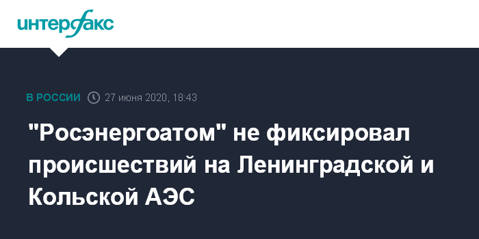 "Росэнергоатом" не фиксировал происшествий на Ленинградской и Кольской АЭС