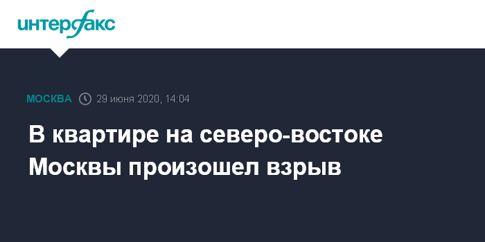 Москва. 29 июня. INTERFAX.RU - Взрыв произошел в доме на северо-востоке Москвы, сообщил "Интерфаксу" информированный источник.