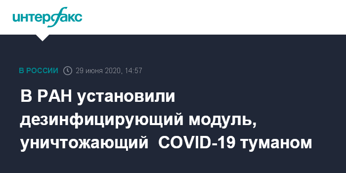 В РАН установили дезинфицирующий модуль, уничтожающий COVID-19 туманом