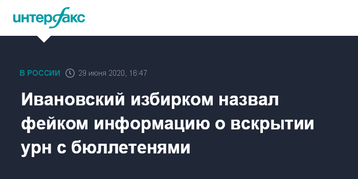Москва. 29 июня. INTERFAX.RU - Избирательная комиссия Ивановской области назвала недостоверной информацию о вскрытии урн с бюллетенями на участках для голосования по поправкам в Конституцию РФ.
