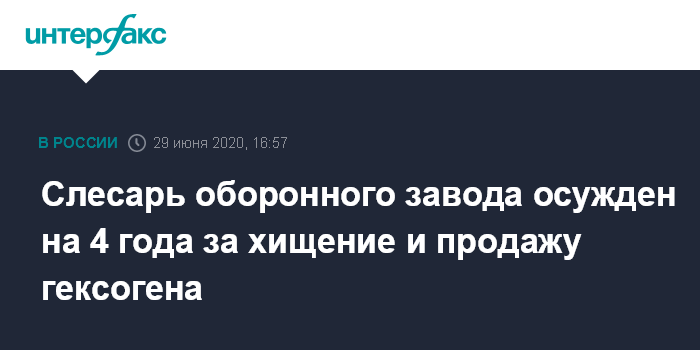 Слесарь оборонного завода осужден на 4 года за хищение и продажу гексогена