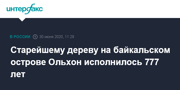 Москва. 30 июня. INTERFAX.RU - В июне 2020 года исполнилось 777 лет старейшему дереву на острове Ольхон на Байкале, сообщила сообщает пресс-служба ФГБУ "Заповедное Прибайкалье". Это лиственница "Страж Ольхона".