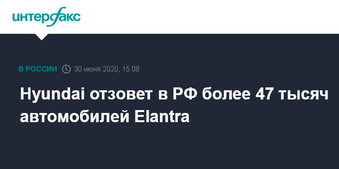 Москва. 30 июня. INTERFAX.RU - Российское подразделение Hyundai – ООО "Хендэ Мотор СНГ" – отзывает в России 47 653 автомобилей Elantra серии HD, сообщил Росстандарт.
