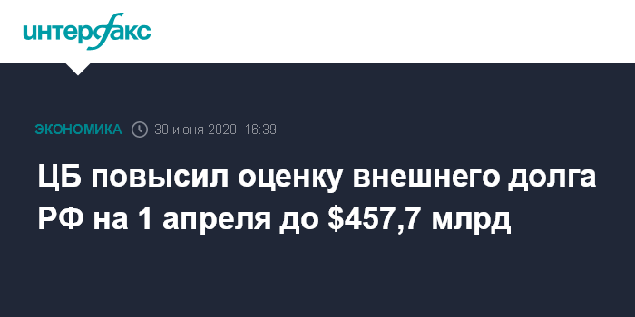 ЦБ повысил оценку внешнего долга РФ на 1 апреля до $457,7 млрд