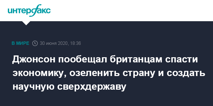 Джонсон пообещал британцам спасти экономику, озеленить страну и создать научную сверхдержаву