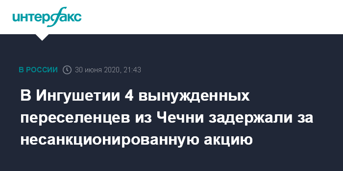 "В середине дня 30 июня 15 вынужденных переселенцев из Чеченской Республики попытались записать видеообращение. Вместе с тем проведение данной акции, содержащей признаки публичного мероприятия, не было согласовано в порядке, установленном Федеральным законом "О собраниях, митингах, демонстрациях, шествиях и пикетированиях", - сказал представитель ведомства.