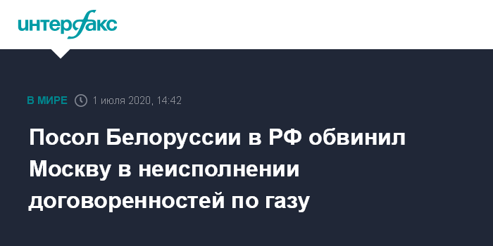 Москва. 1 июля. INTERFAX.RU - Посол Белоруссии в России Владимир Семашко заявил, что российская сторона не исполняет ранее взятые на себя обязательства по сотрудничеству в газовой сфере, в том числе по формированию цены для Белоруссии.