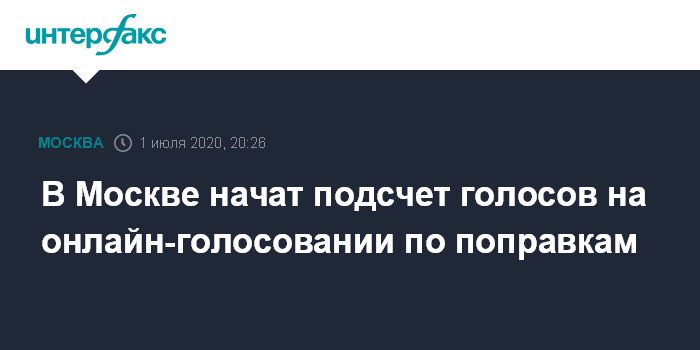 Москва. 1 июля. INTERFAX.RU - Начался подсчет голосов, отданных на дистанционном электронном голосовании, которое проходило с 25 по 30 июня среди жителей Москвы и Нижегородской области.