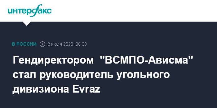Гендиректором "ВСМПО-Ависма" стал руководитель угольного дивизиона Evraz