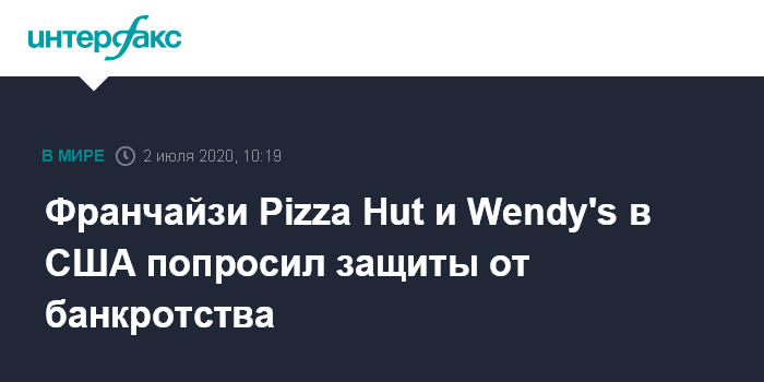 Франчайзи Pizza Hut и Wendy's в США попросил защиты от банкротства