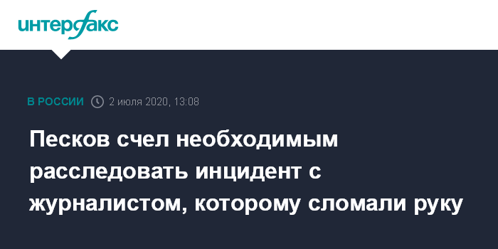 Песков счел необходимым расследовать инцидент с журналистом, которому сломали руку