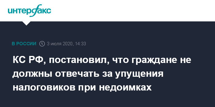 КС РФ, постановил, что граждане не должны отвечать за упущения налоговиков при недоимках