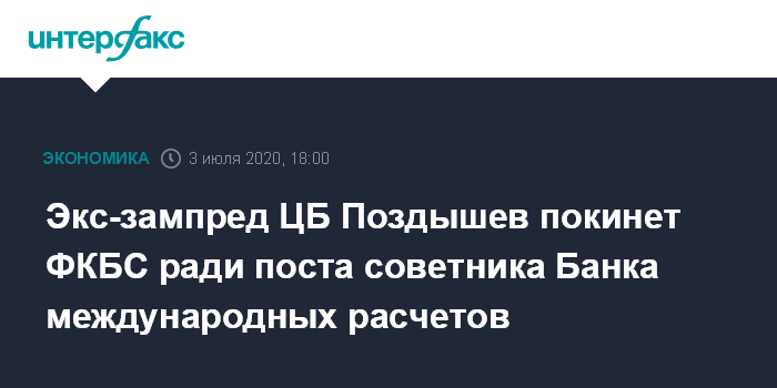 Поздышев переходит на должность старшего советника Банка международных расчетов (BIS, международная финансовая организация и официальный форум центральных банков, выполняет особую функцию "банка центральных банков").