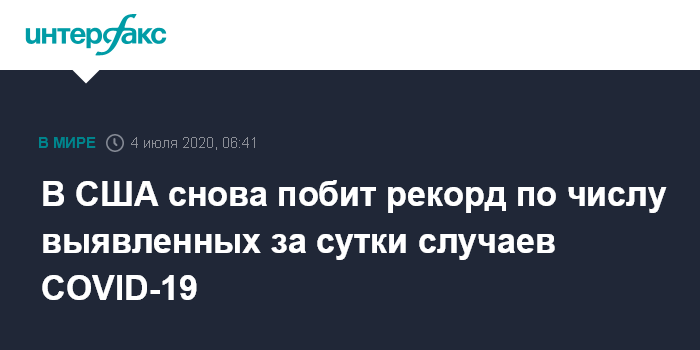 По данным газеты, в преддверии праздничных выходных в честь Дня независимости США рекорды по суточному приросту заболевших демонстрируют по меньшей мере два десятка американских штатов. Больше всего новых случаев в стране выявлено во Флориде, там рекорд по суточному приросту инфицированных фиксируют уже 26-й день подряд.