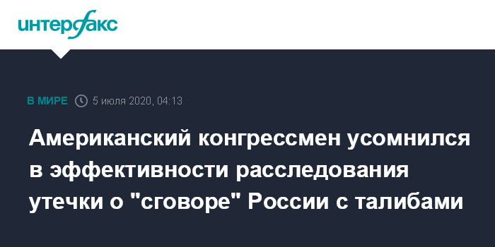 Американский конгрессмен усомнился в эффективности расследования утечки о "сговоре" России с талибами