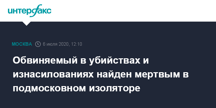 "6 июля в камере следственного изолятора обнаружено тело 53-летнего жителя Каширы, обвиняемого в совершении убийства женщины. Погибший также подозревался в совершении серии убийств и изнасилований на территории Ступинского и Каширского городских округов", - отметила Врадий.