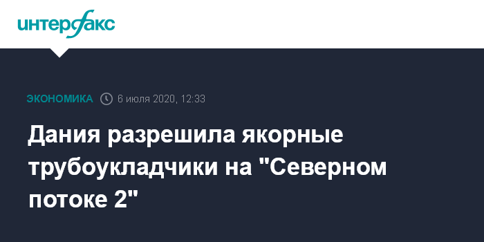 Москва. 6 июля. INTERFAX.RU - Трубоукладочные суда с якорным позиционированием (в дополнение к судам с динамическим позиционированием) смогут применяться на строительстве магистрали "Северный поток 2" в датской исключительной экономической зоне, говорится в сообщении Датского энергетического агентства.