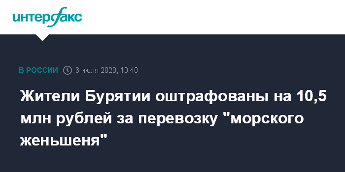 Жители Бурятии оштрафованы на 10,5 млн рублей за перевозку "морского женьшеня"