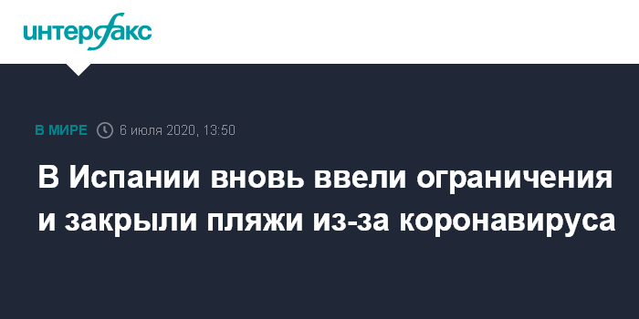 Москва. 6 июля. INTERFAX.RU - Власти Испании закрыли десятки популярных пляжей из-за опасений распространения COVID-19, сообщают европейские СМИ.