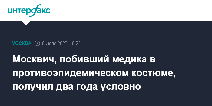 Москвич, побивший медика в противоэпидемическом костюме, получил два года условно
