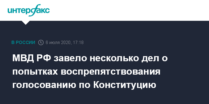 МВД РФ завело несколько дел о попытках воспрепятствования голосованию по Конституцию