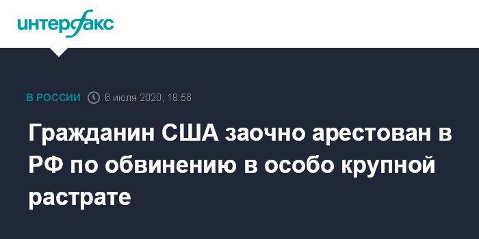 Гражданин США заочно арестован в РФ по обвинению в особо крупной растрате