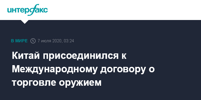Москва. 7 июля. INTERFAX.RU - Китай передал генеральному секретарю ООН Антонио Гутеррешу документ о присоединении к Международному договору о торговле оружием (МДТО), сообщило постпредство КНР при ООН.