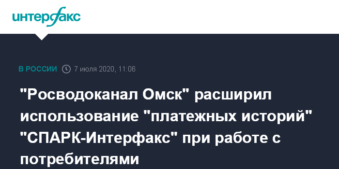 "Росводоканал Омск" расширил использование "платежных историй" "СПАРК-Интерфакс" при работе с потребителями