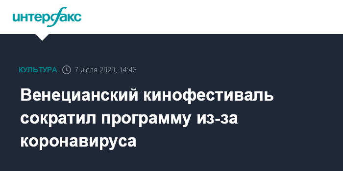 "Предстоящий Mostra del Cinema, запланированный на 2-12 сентября, пройдет с некоторыми изменениями, которые стали необходимы в соответствии с санитарными протоколами, введенными в связи с чрезвычайной ситуацией с COVID-19. В целях соблюдения обязательных мер, необходимых для обеспечения безопасности участников - в первую очередь благодаря социальному дистанцированию - общее количество фильмов в официальном отборе будет сокращено, хотя и ненамного", - сообщили организаторы.