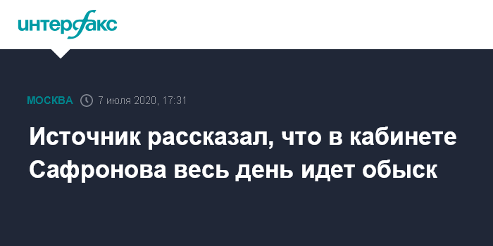 Источник рассказал, что в кабинете Сафронова весь день идет обыск