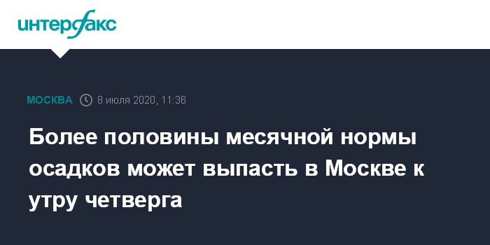 Более половины месячной нормы осадков может выпасть в Москве к утру четверга