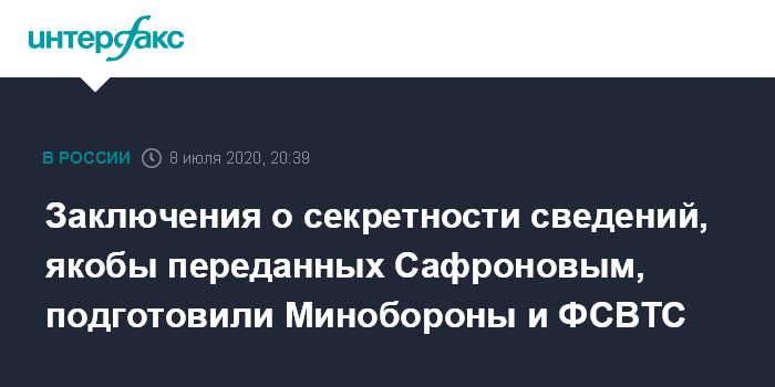 Заключения о секретности сведений, якобы переданных Сафроновым, подготовили Минобороны и ФСВТС