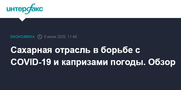Москва. 9 июля. INTERFAX.RU - Сахарная отрасль, которая в прошлом году столкнулась с проблемой перепроизводства и закрытием нескольких сахарных заводов, в этом году планировала выправить ситуацию за счет некоторого снижения посевных площадей под сахарной свеклой. Но в этот процесс вмешались коронавирус и аномальные погодные условия, в частности пыльные бури.