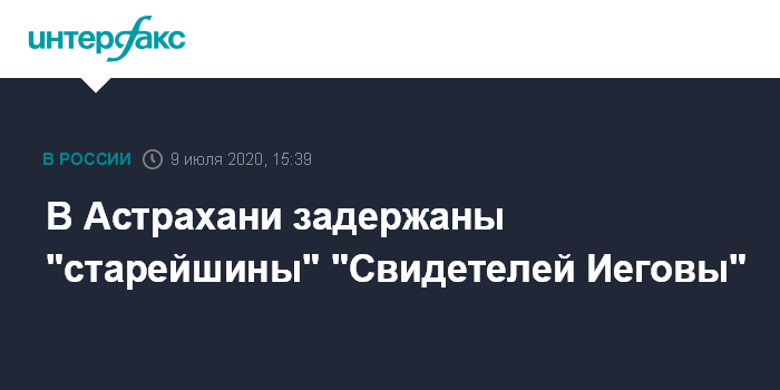 Москва. 9 июля. INTERFAX.RU - В Астрахани четырех человек задержали по подозрению в организации местной общины "Свидетелей Иеговы" (запрещены в России как экстремистская организация). В областном СК их назвали "старейшинами" и фактическими руководителями местной религиозной организации.