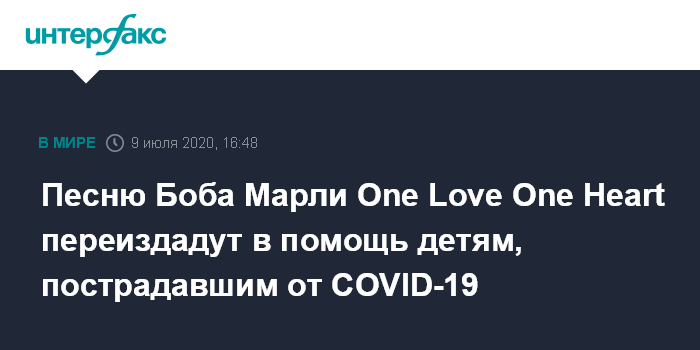 Москва. 9 июля. INTERFAX.RU - Семья звезды регги Боба Марли решила переиздать его песню One Love One Heart в помощь детям, пострадавшим от эпидемии коронавируса, сообщает в четверг Детский фонд ООН (UNICEF).