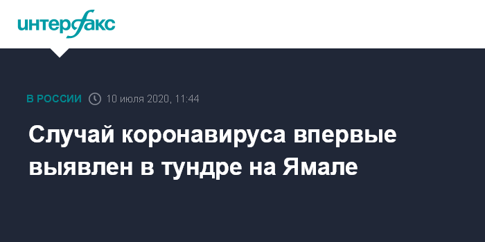 Москва. 10 июля. INTERFAX.RU - Коронавирус впервые зафиксирован у жителя тундры в Ямало-Ненецком автономном округе.