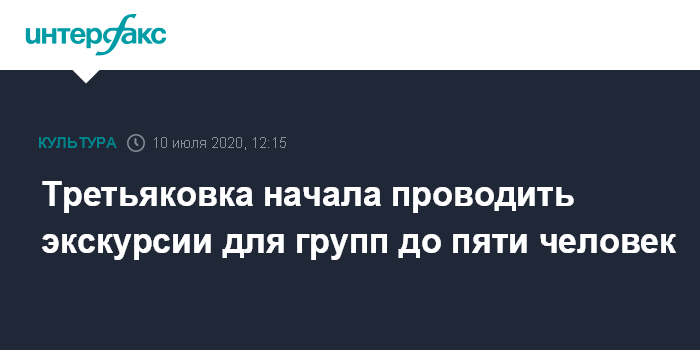 Москва. 10 июля. INTERFAX.RU - Третьяковская галерея начала проводить групповые экскурсии, численность групп не должна превышать пяти человек, сообщили в пресс-службе музея.