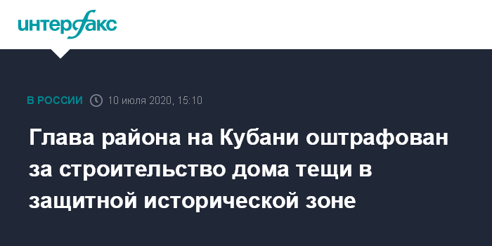 Глава района на Кубани оштрафован за строительство дома тещи в защитной исторической зоне