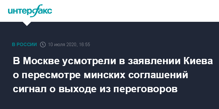 Москва. 10 июля. INTERFAX.RU - В Москве расценивают заявления вице-премьера Украины Алексея Резникова о необходимости пересмотра Комплекса мер по урегулированию в Донбассе как сигнал о возможном выходе Киева из Минского и Нормандского процесса.