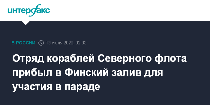 Москва. 13 июля. INTERFAX.RU - Отряд кораблей Северного флота в составе большого противолодочного корабля "Вице-адмирал Кулаков" и атомного подводного ракетного крейсера "Орел" прибыл в Финский залив для участия Главном военно-морском параде, сообщает департамент информации и массовых коммуникаций Минобороны РФ.