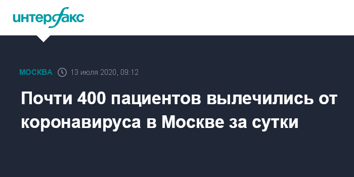 Почти 400 пациентов вылечились от коронавируса в Москве за сутки