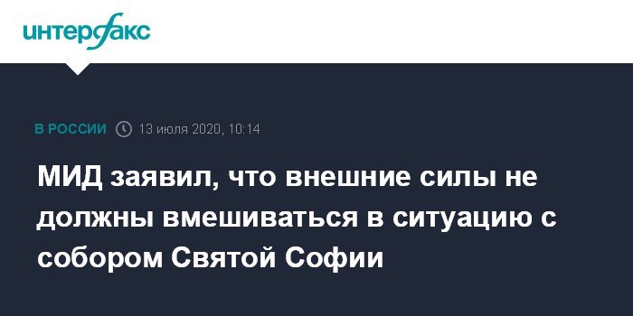 МИД заявил, что внешние силы не должны вмешиваться в ситуацию с собором Святой Софии
