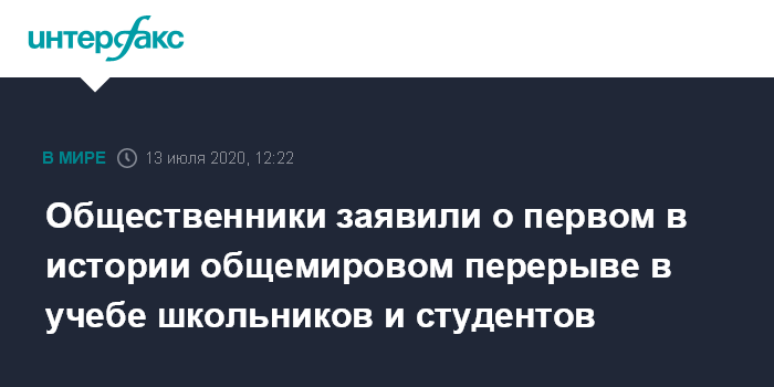 Общественники заявили о первом в истории общемировом перерыве в учебе школьников и студентов
